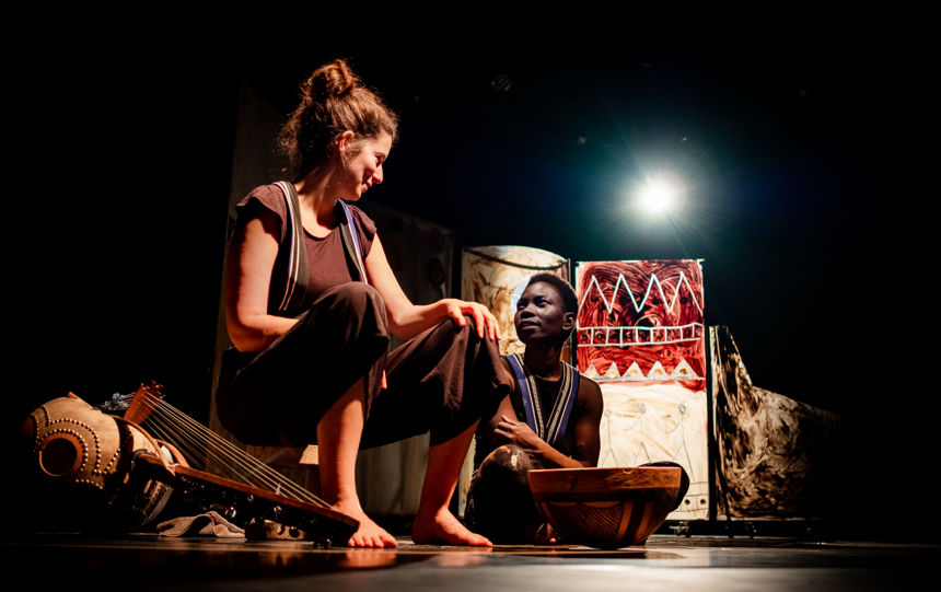 « Sur le toit d’une maison Kasséna, une jeune femme mêle l’argile et l’eau, patouille, gribouille, explore le chemin des premières traces. Tiébélé fait écho aux magnifiques empreintes laissées sur leurs maisons par les femmes d’un village du Burkina Faso. C’est un spectacle qui allie plastique et poésie. Terre et chant. Matière organique et matériau sensible. » Une production du Théâtre de la Guimbarde (Fédération Wallonie-Bruxelles), en collaboration avec l’Association Wéléni (Burkina Faso). En coproduction avec le projet européen Mapping.